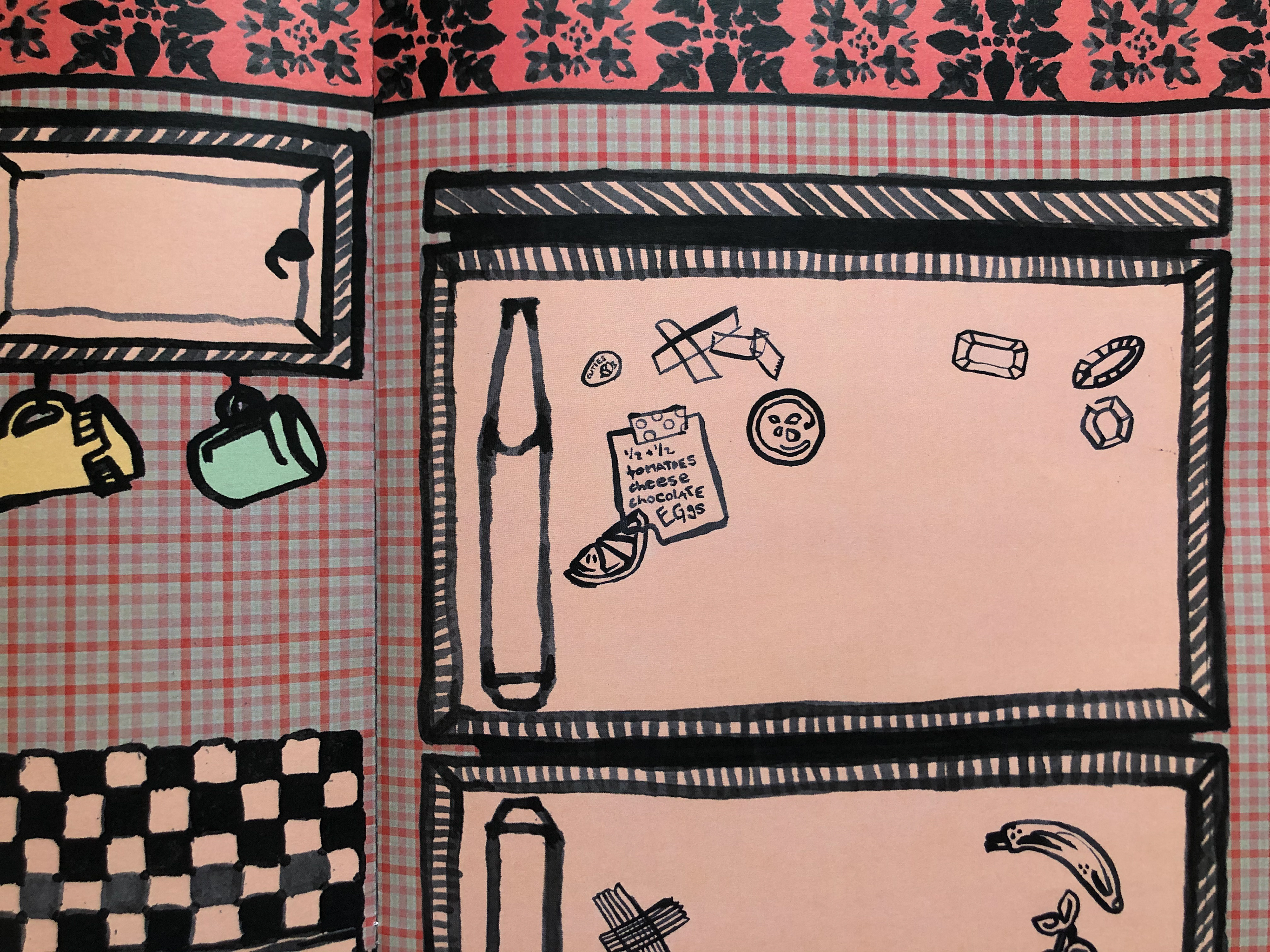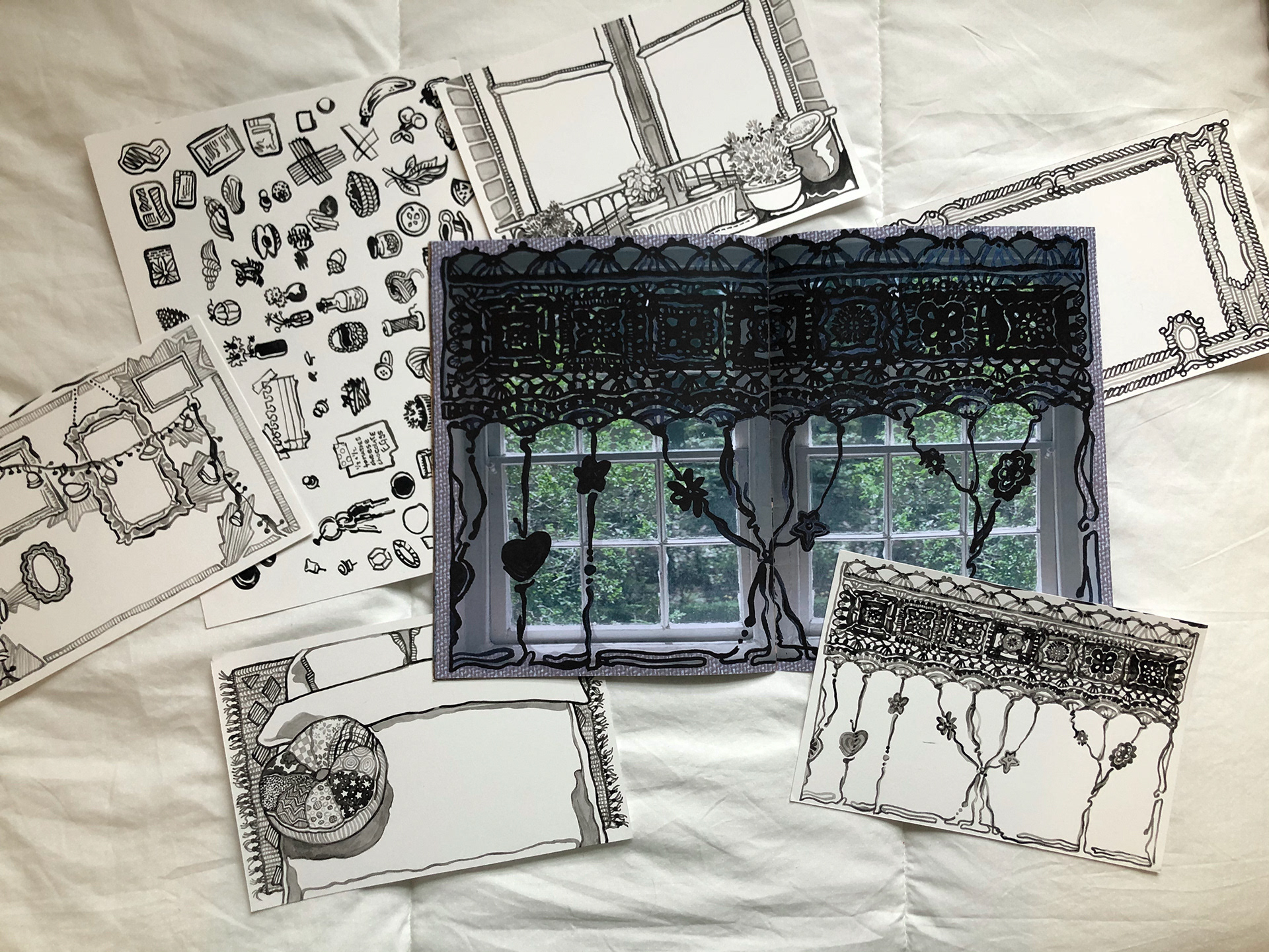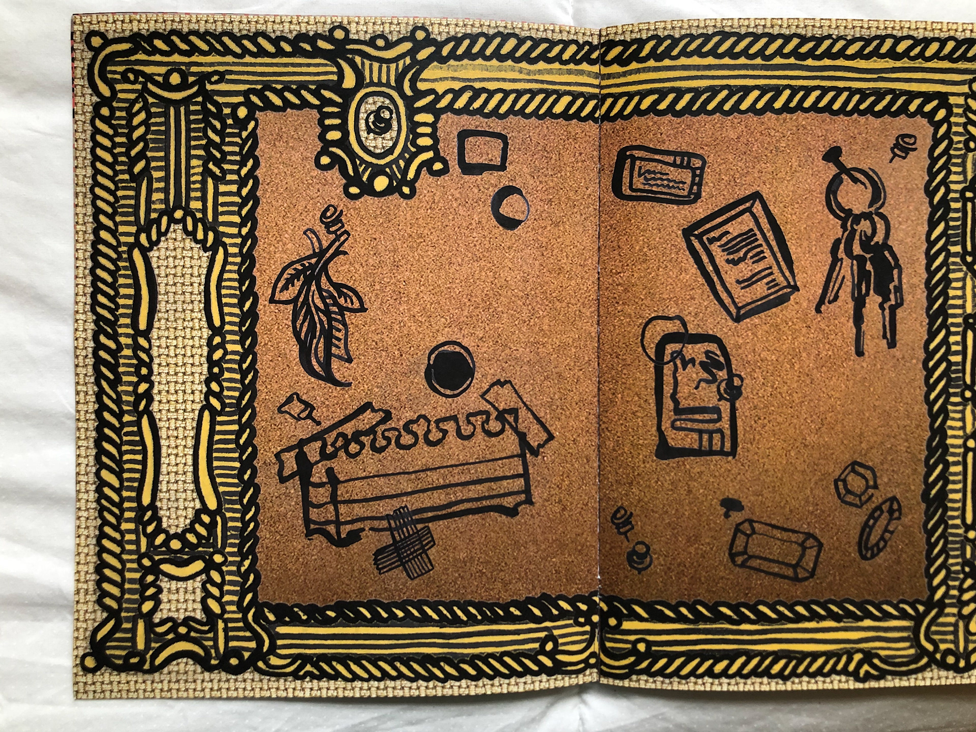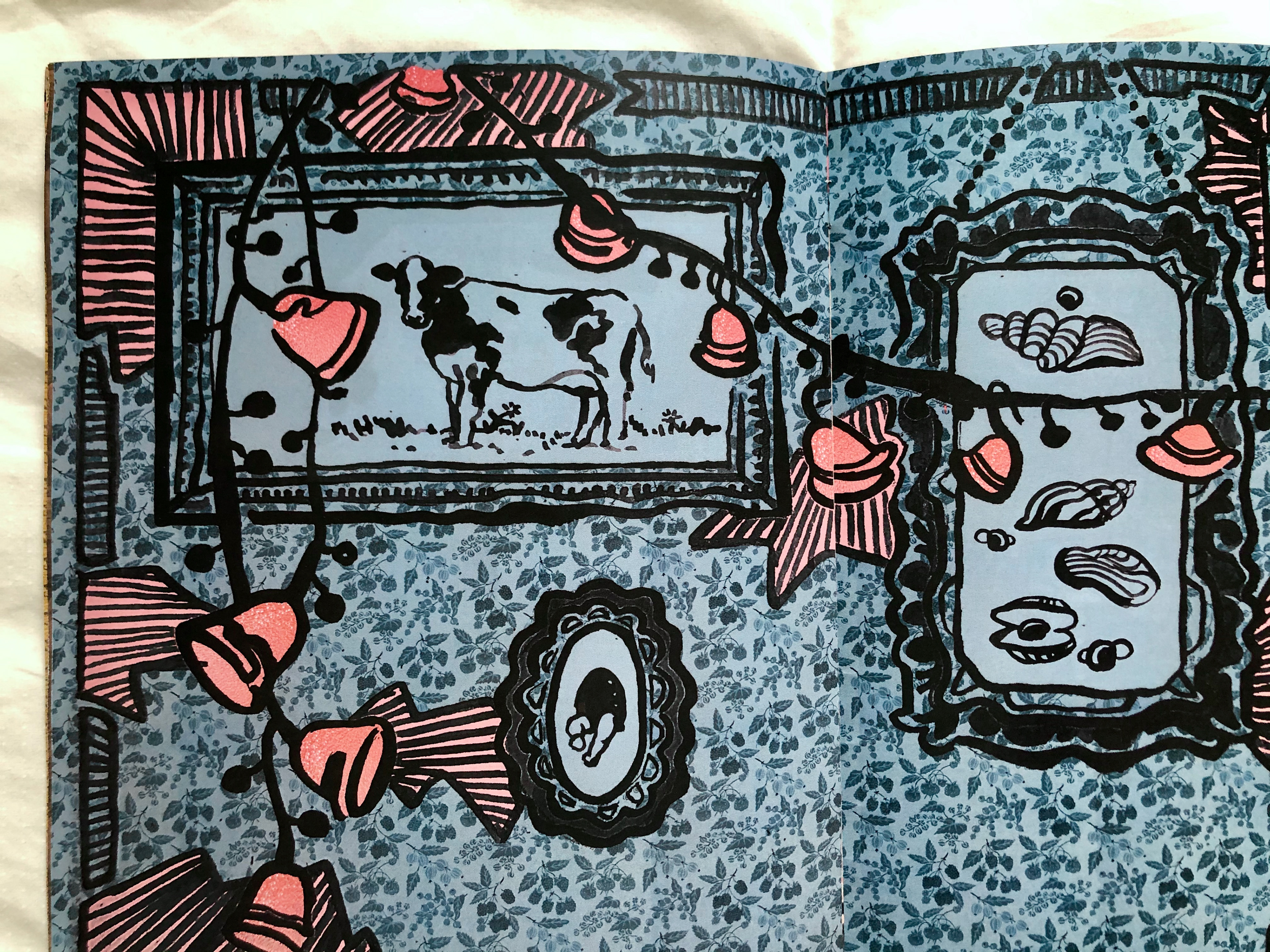 Saddle stitch book designed in Adobe Photoshop and Adobe InDesign combining ink drawings and photo collage.