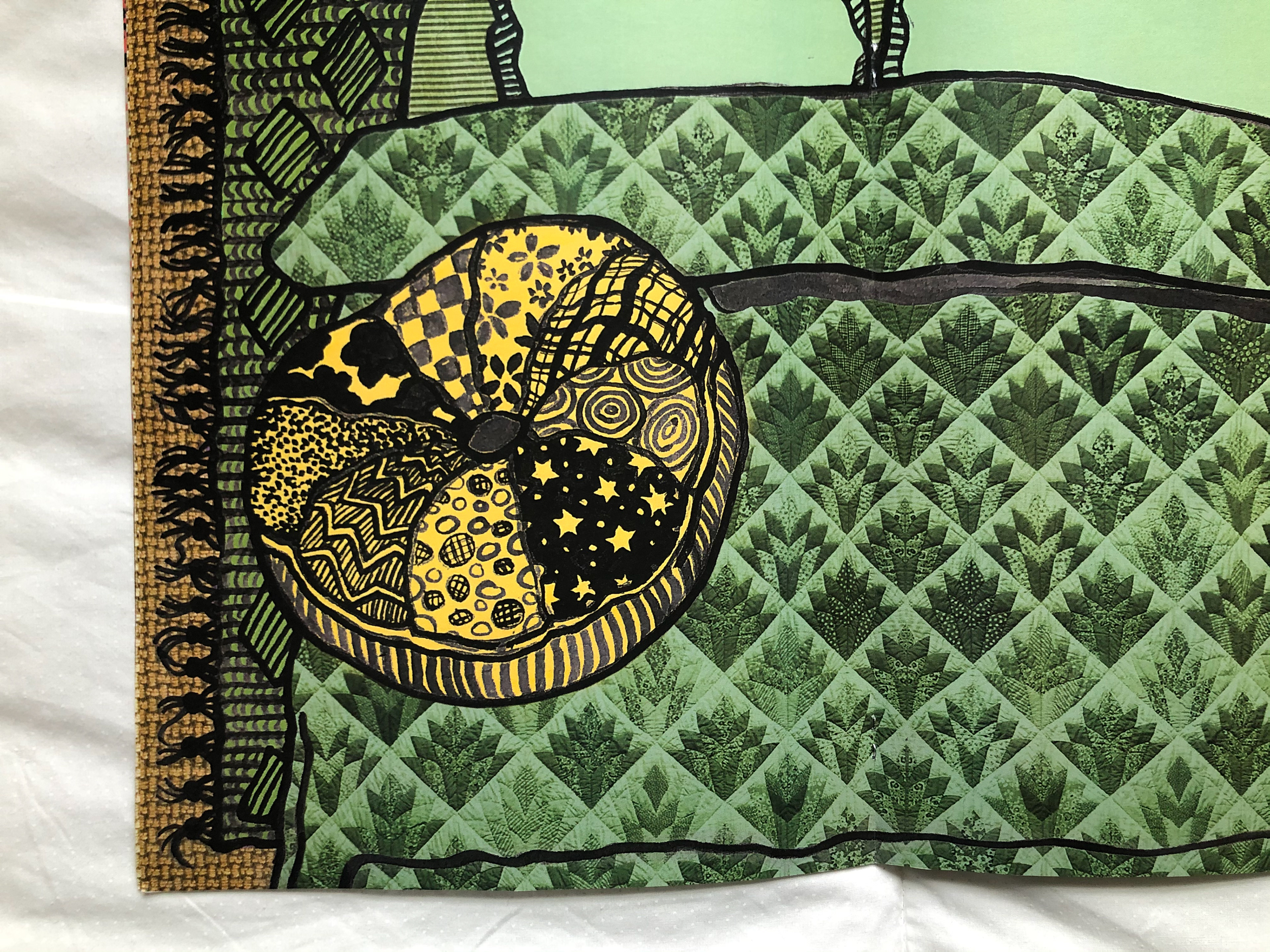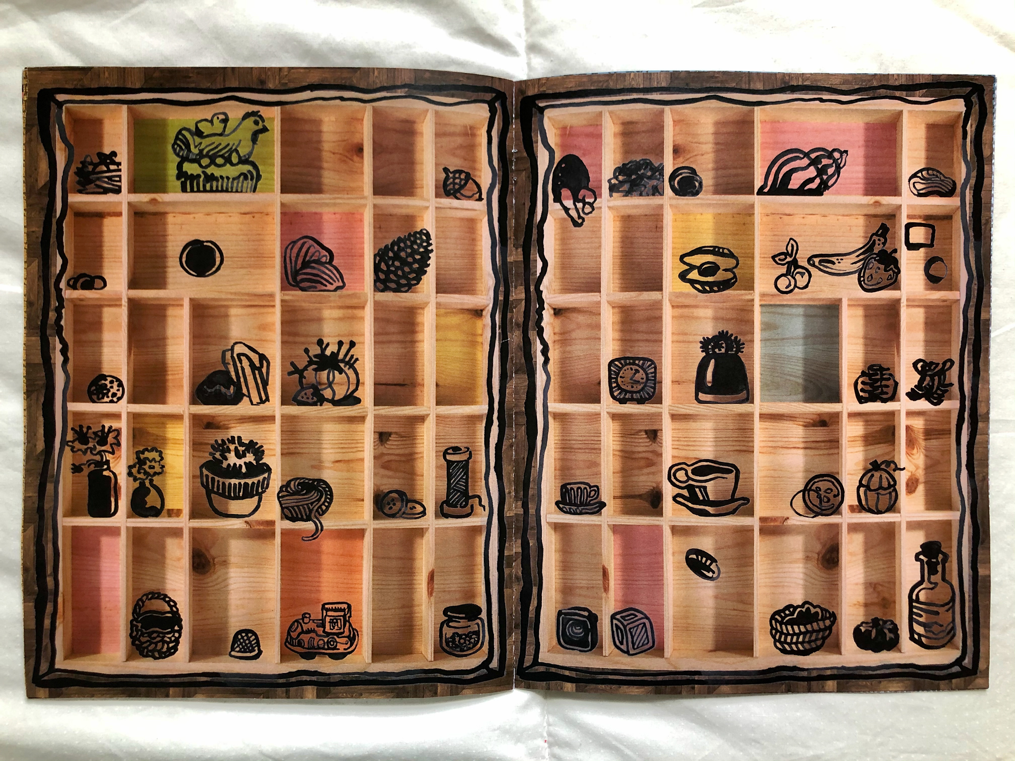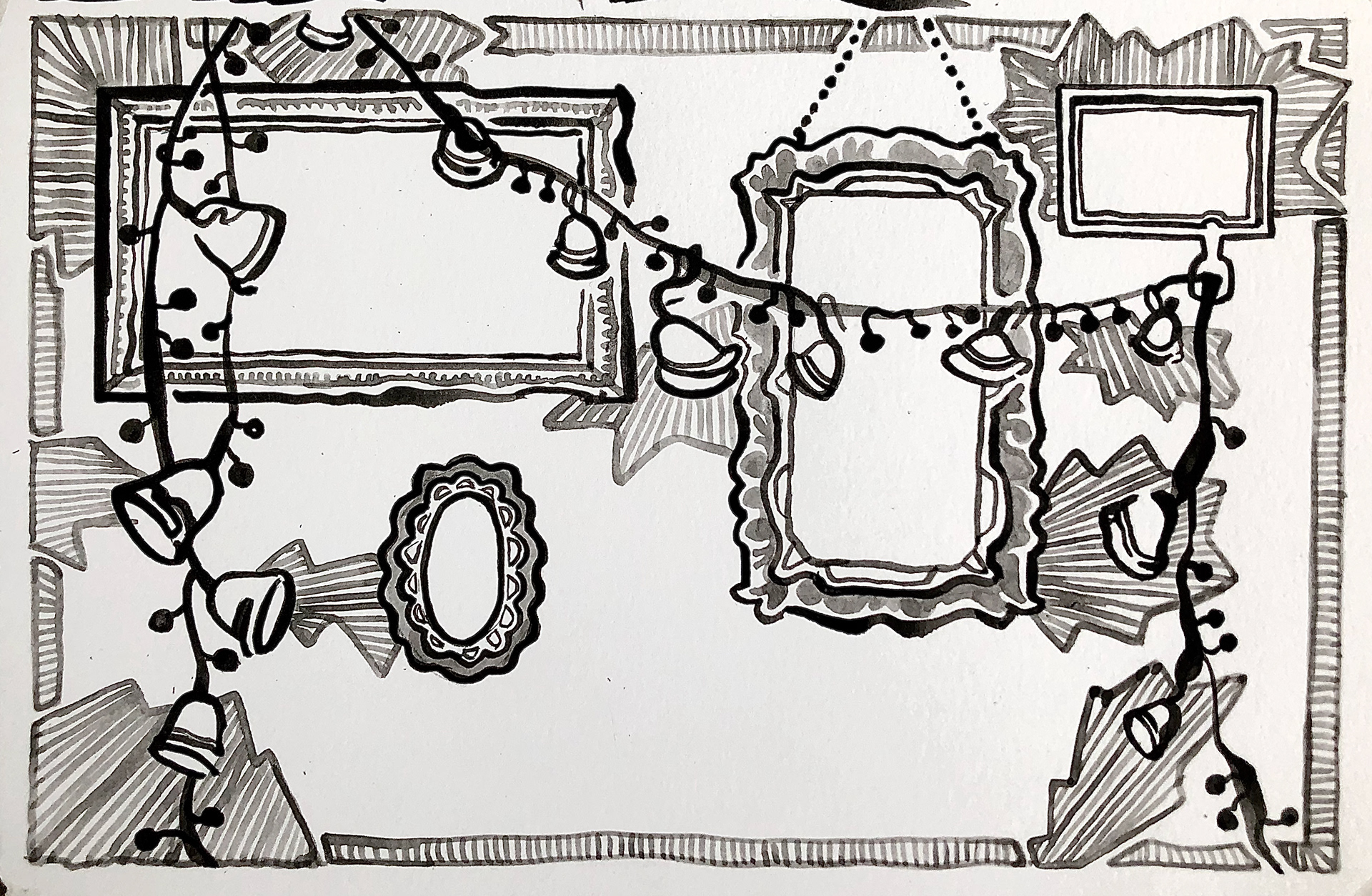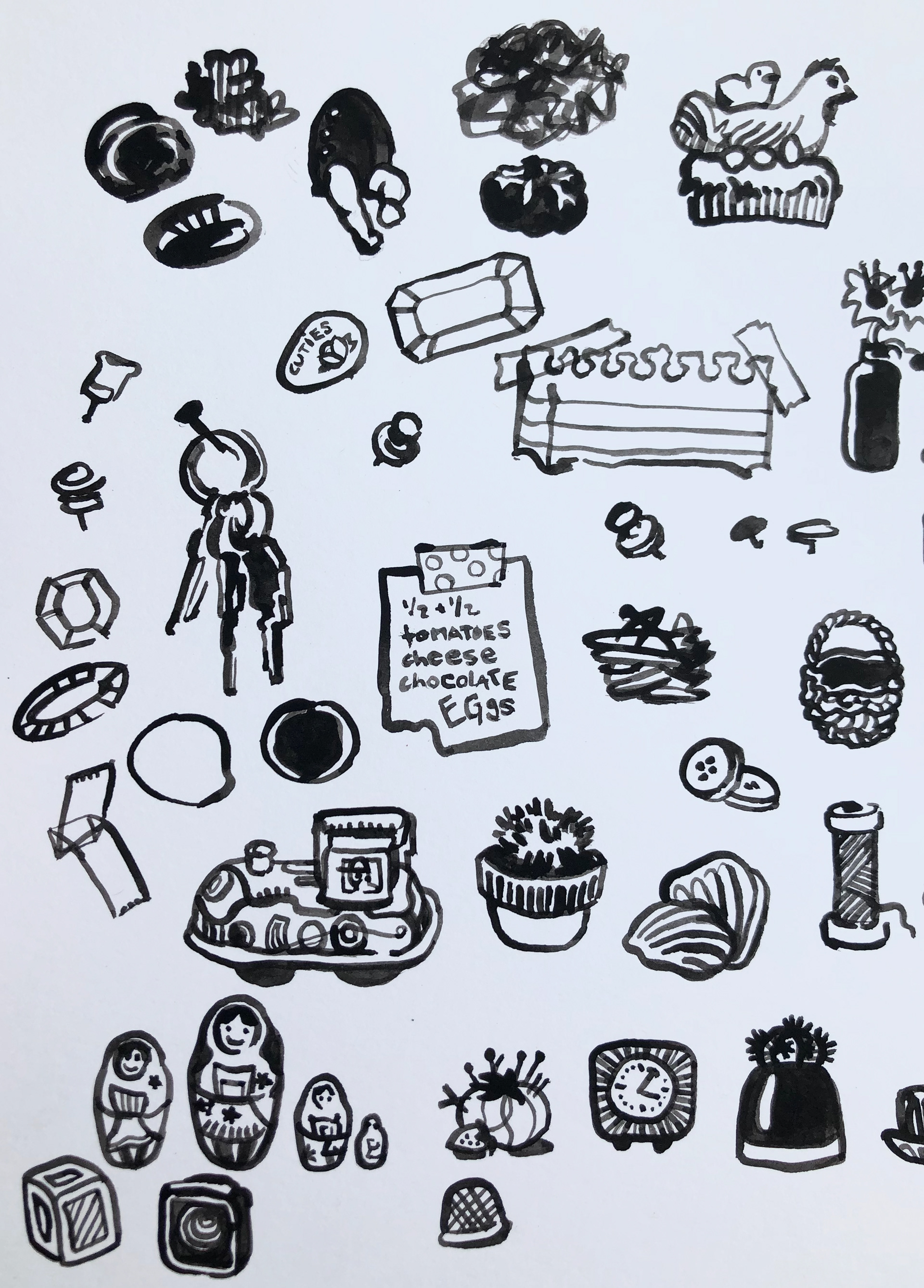 Saddle stitch book designed in Adobe Photoshop and Adobe InDesign combining ink drawings and photo collage.