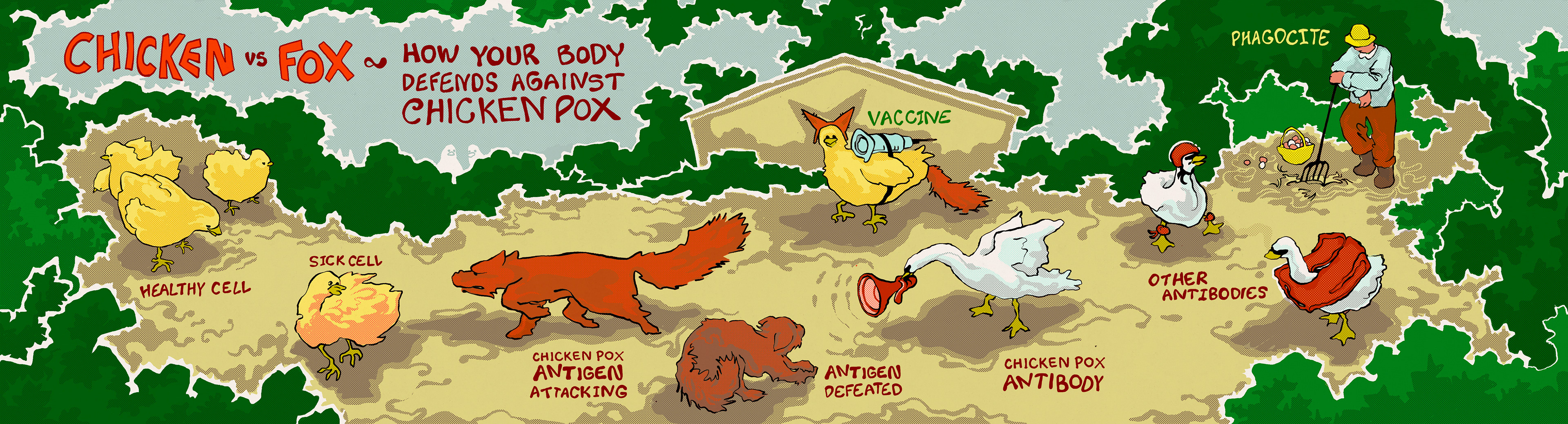 Info-graphic designed to teach elementary school children about the chicken pox vaccine.