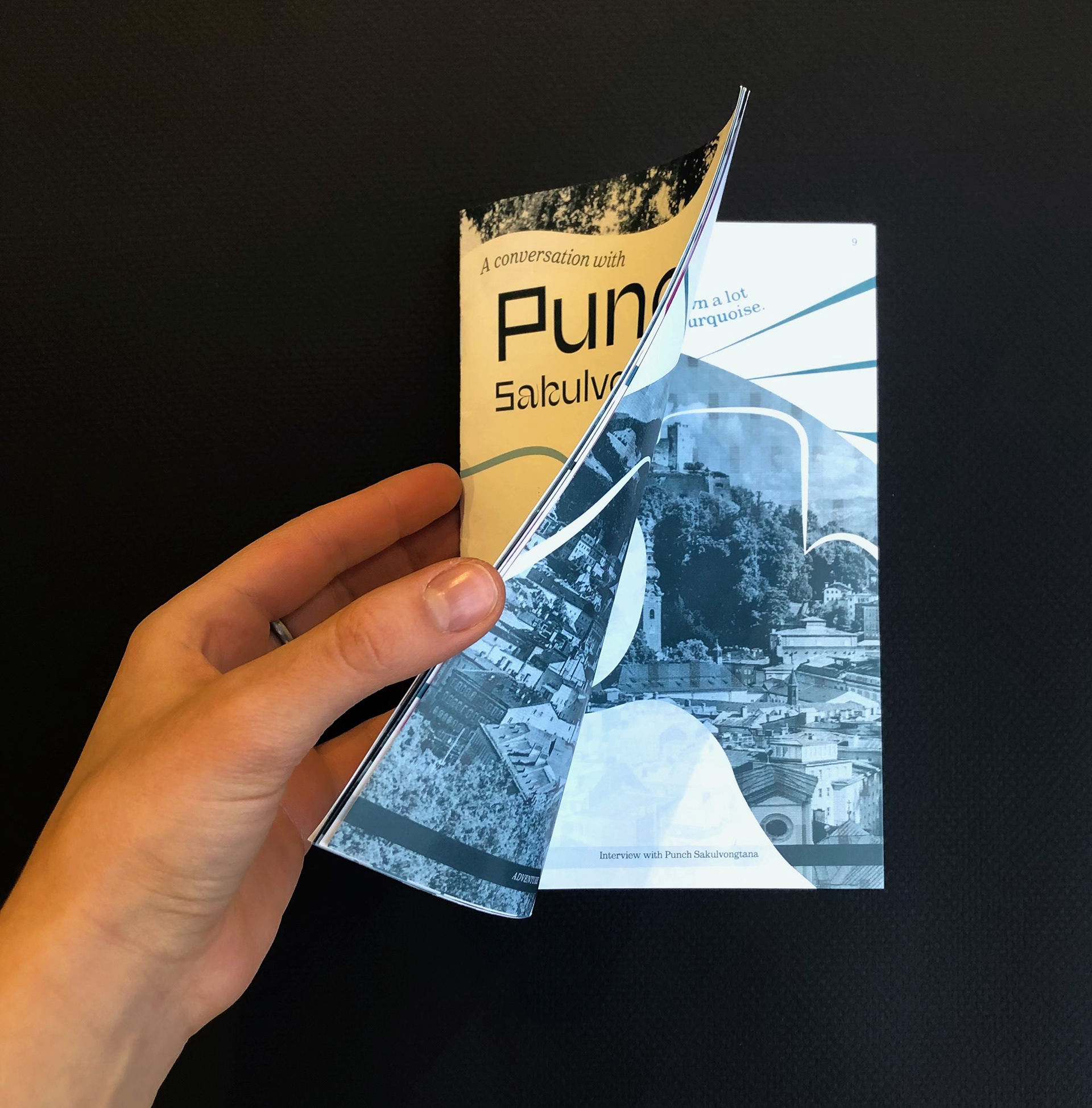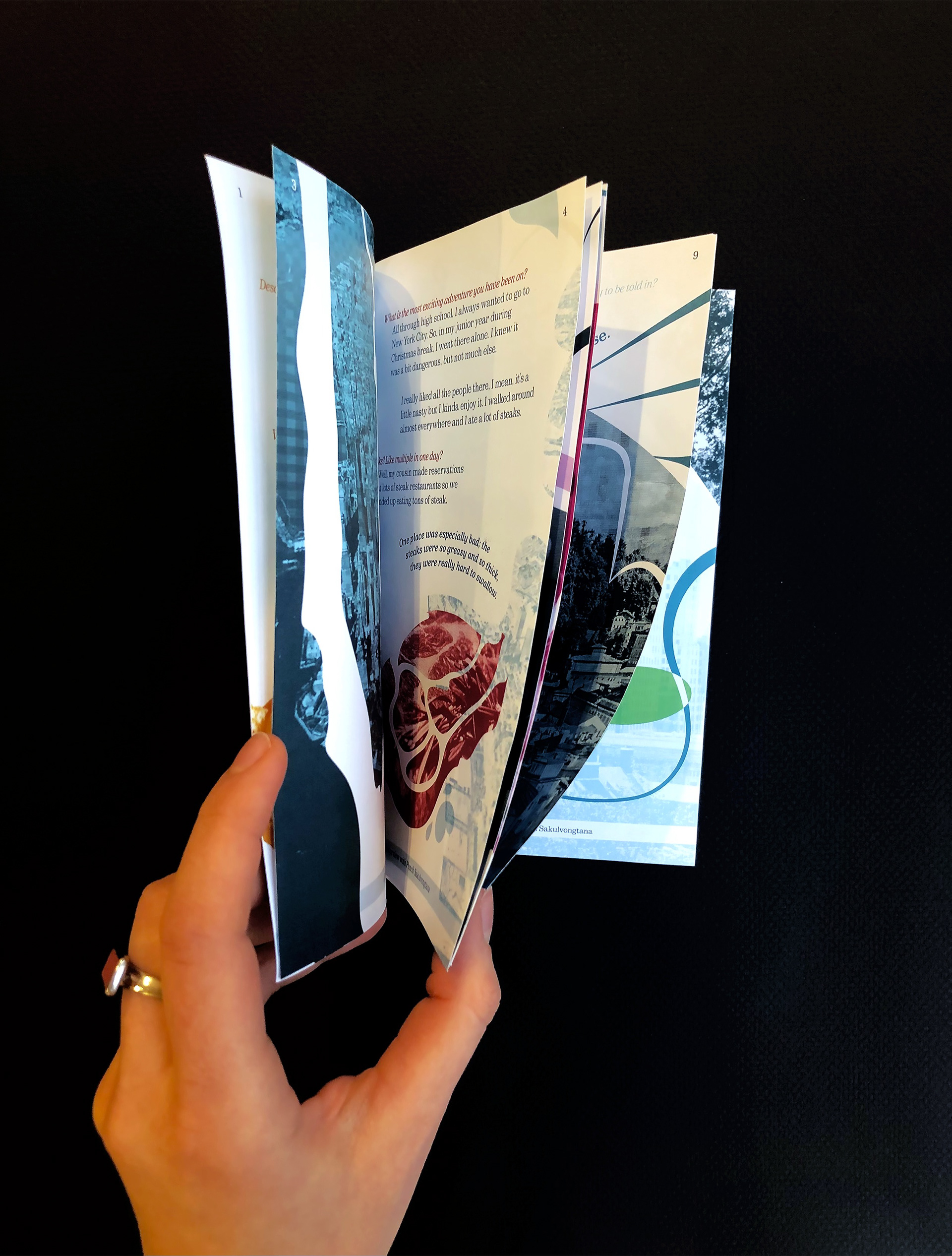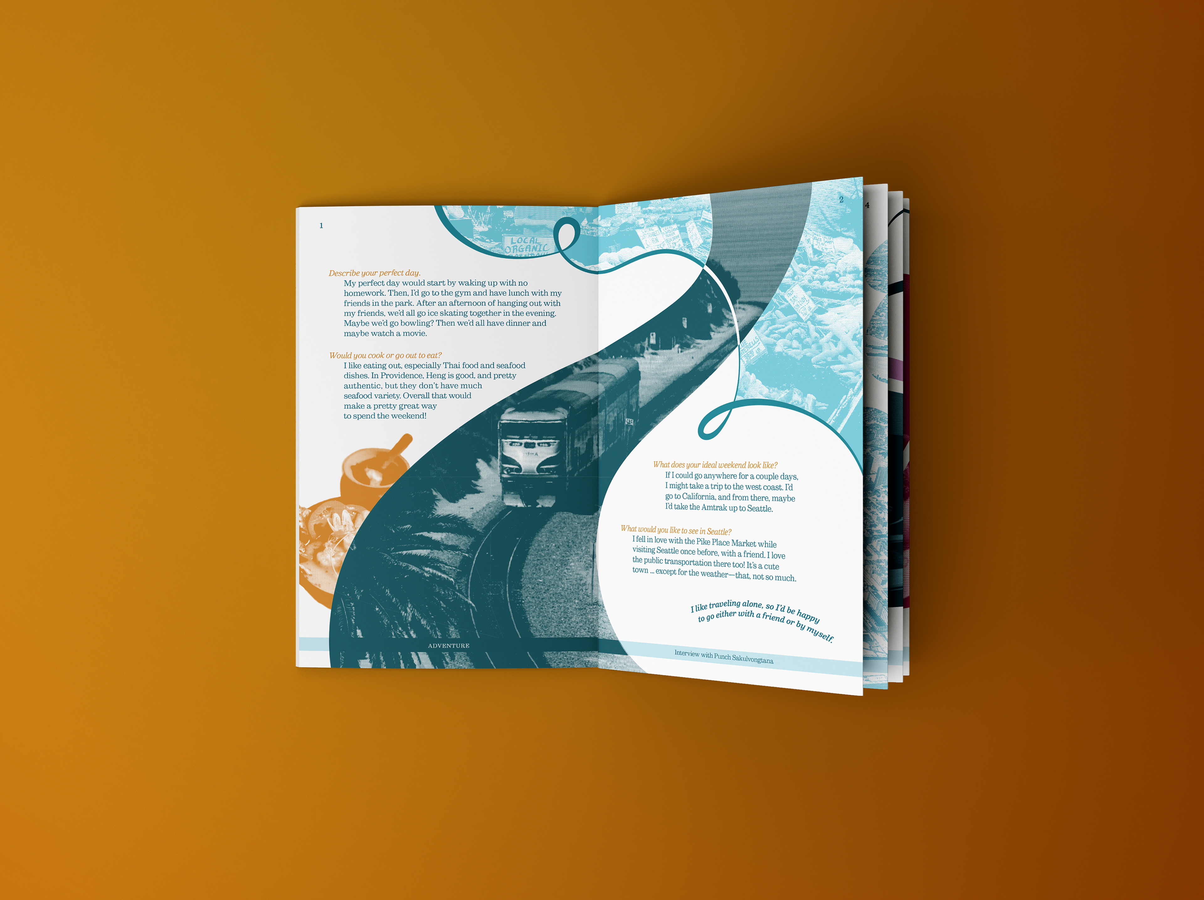16-page saddle-stitch interview booklet, created in Adobe InDesign and Adobe Illustrator.