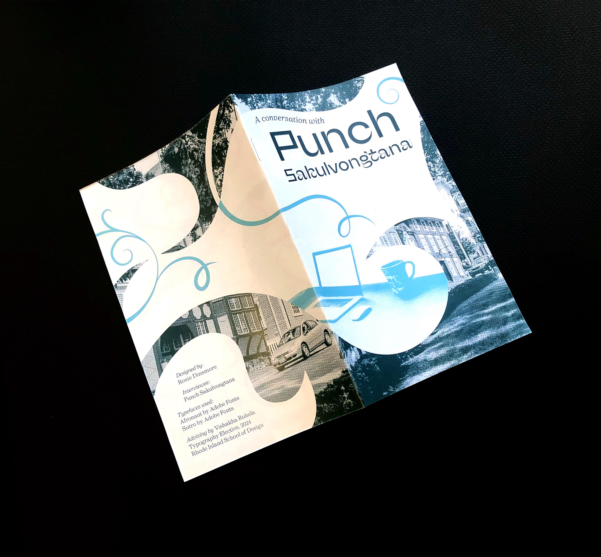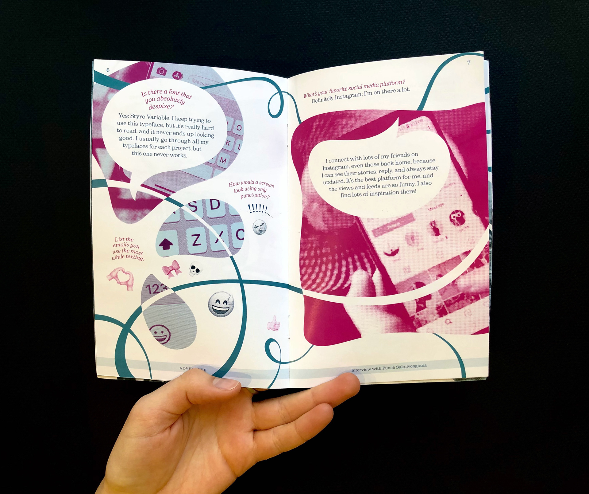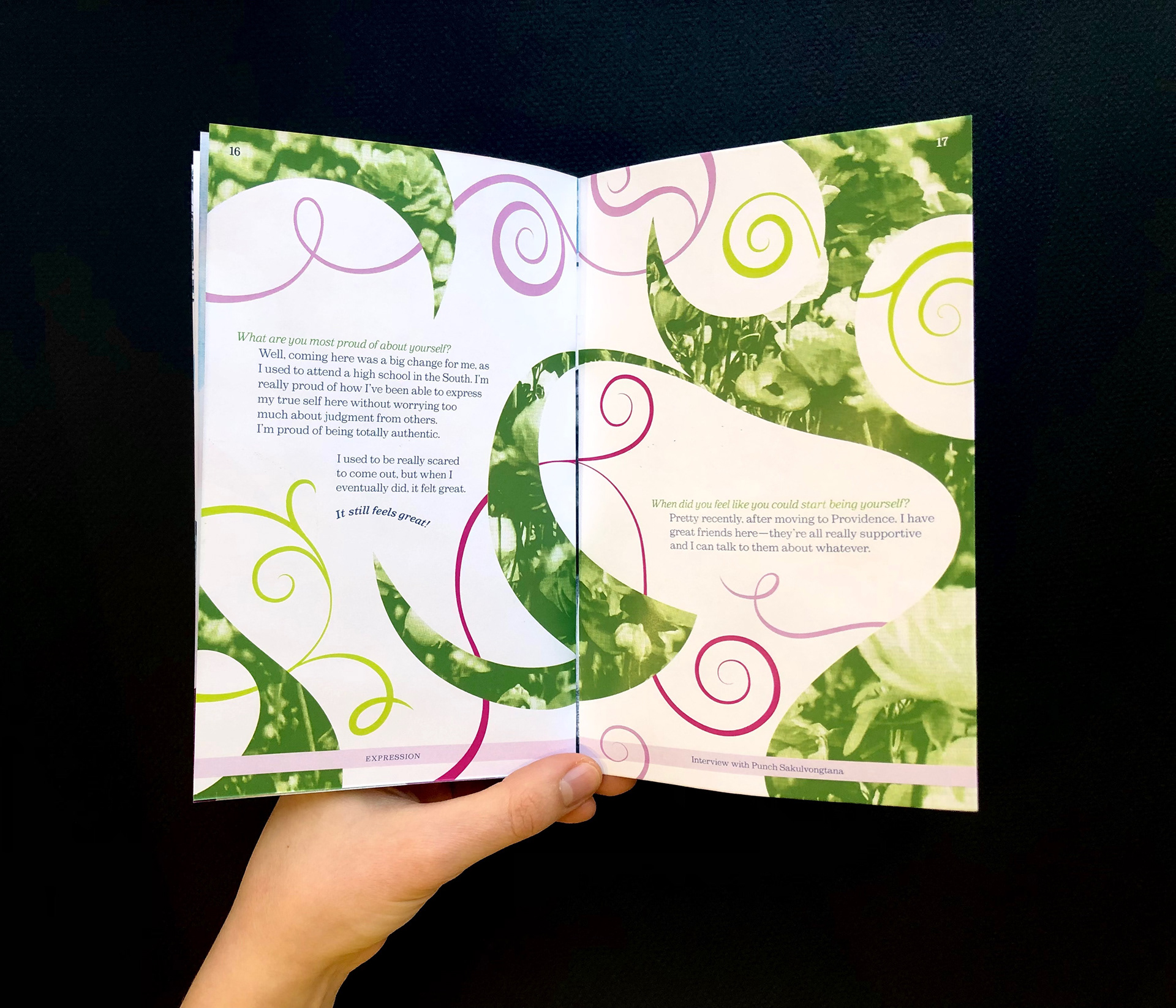 16-page saddle-stitch interview booklet, created in Adobe InDesign and Adobe Illustrator.
