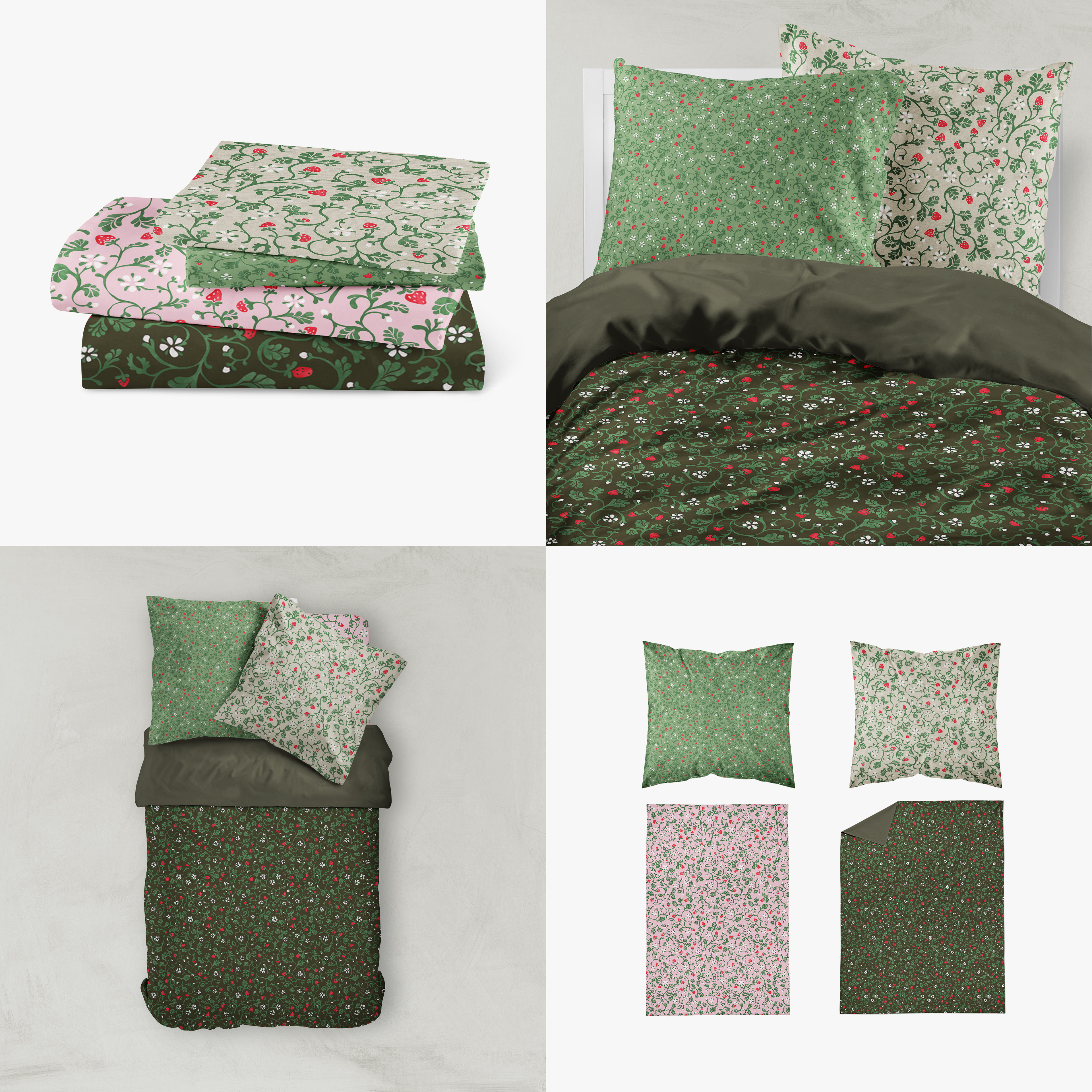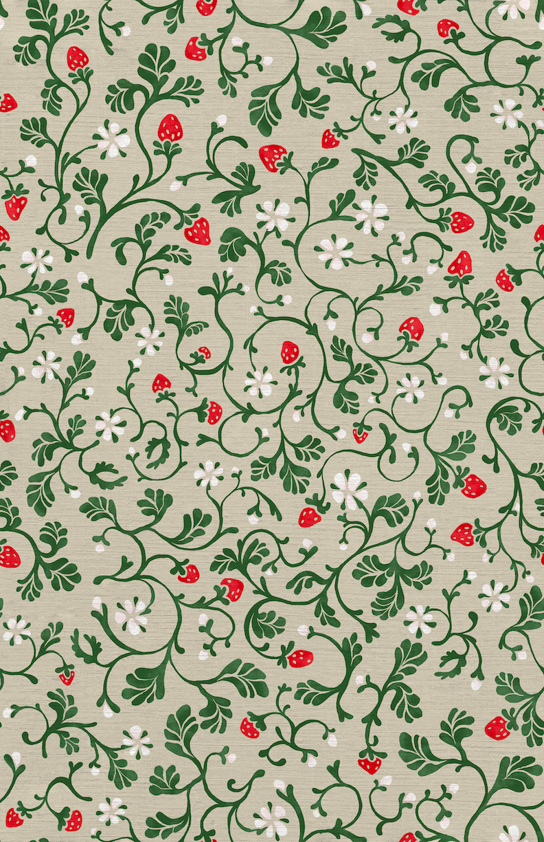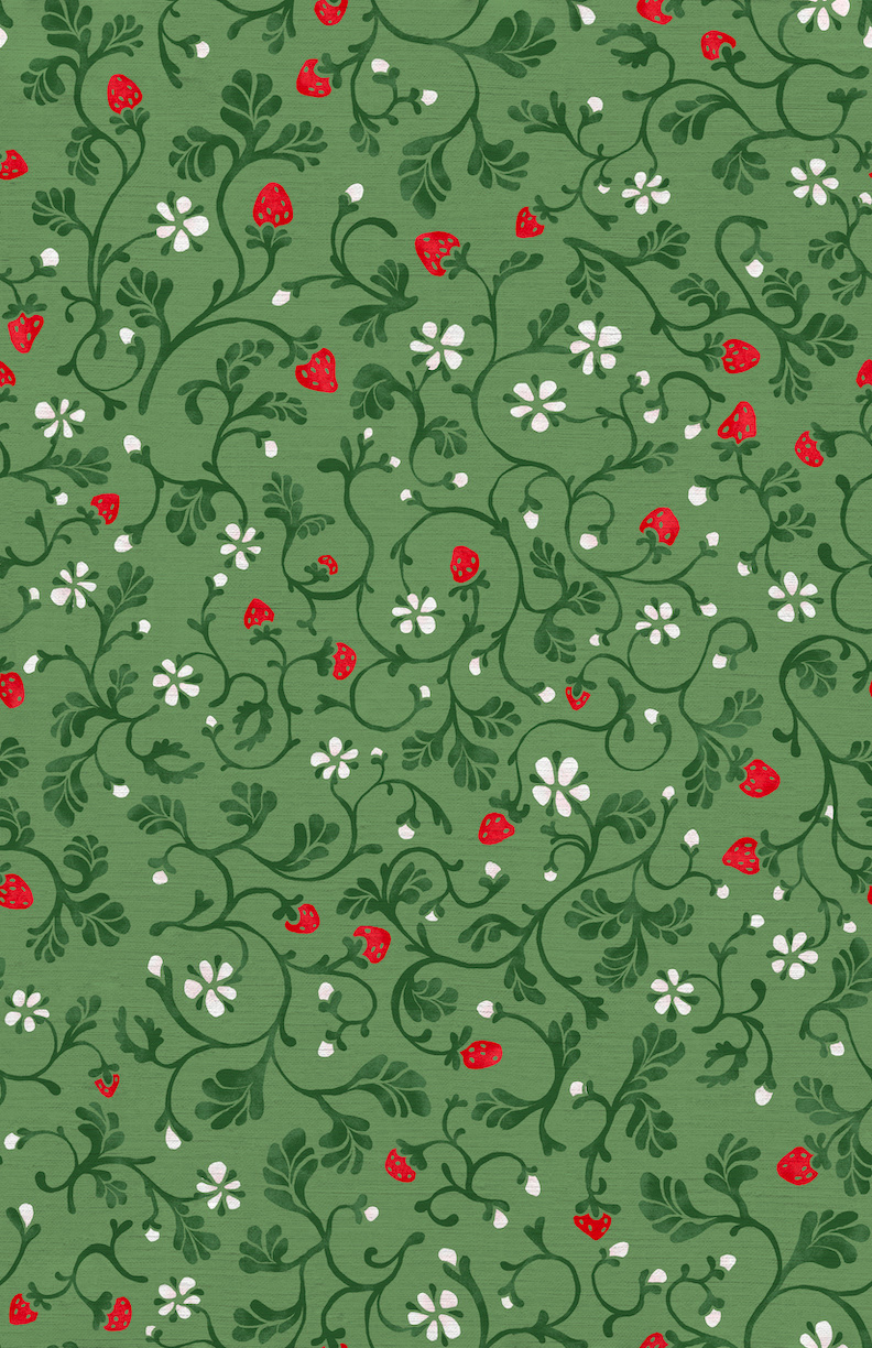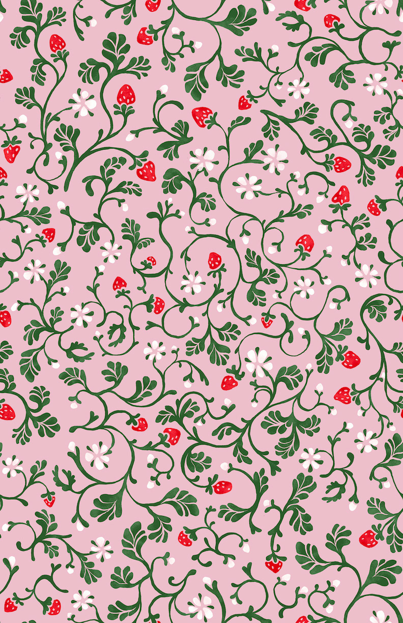 Seamless repeat textile pattern designed with ceramic Strawberry Foragers Home collection. Designed in Adobe Photoshop.